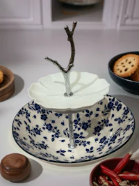 Blue and White Ceramic Bowl. 8 in.